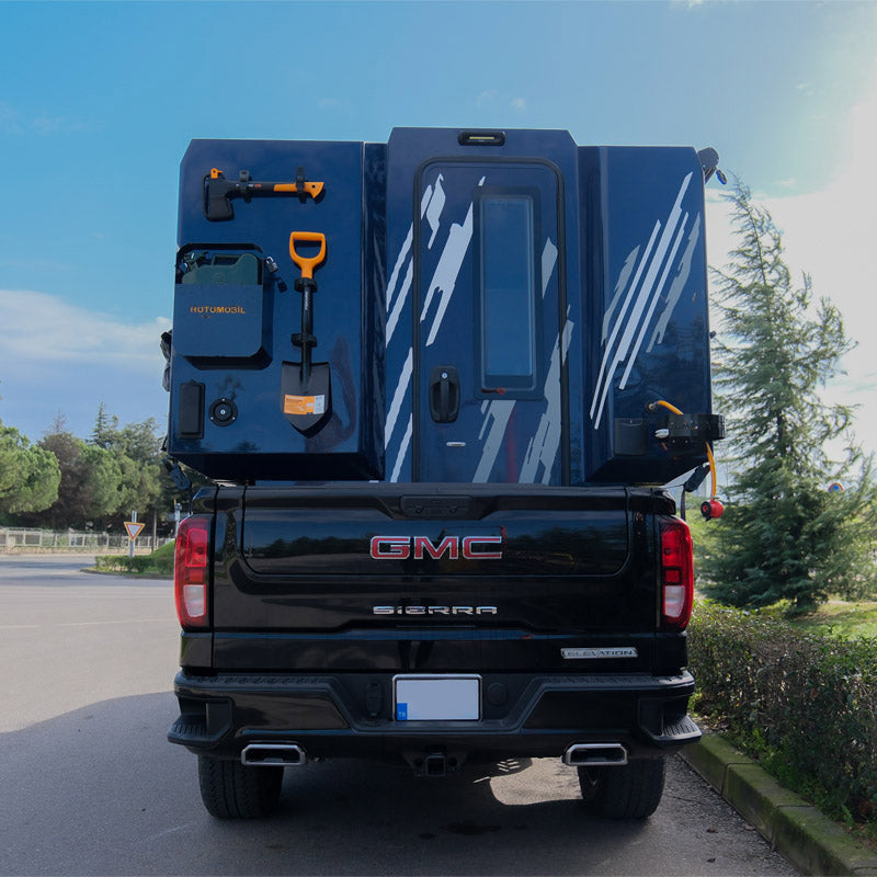 Easily mountable and demountable by a single person, Gladiator L transforms your 4x4 pick-up into a full-featured camper — no commercial license required, just your standard driver’s license.