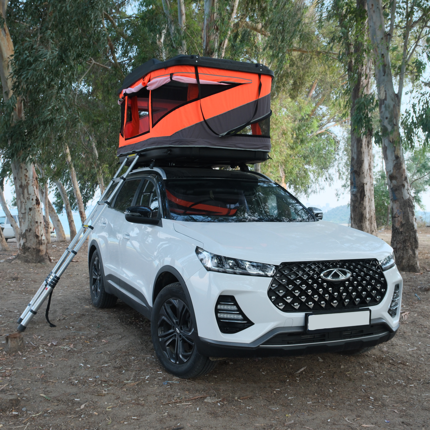 Additional Features: Our rooftop tent attachment also comes with a handy storage pocket inside the tent, allowing you to keep your belongings within easy reach and ensuring a tidy camping experience. Additionally, our tent is made from fiber and blackout fabric, providing protection from the sun while also allowing for breathable conditions inside the tent. İncluding telescopic ladder